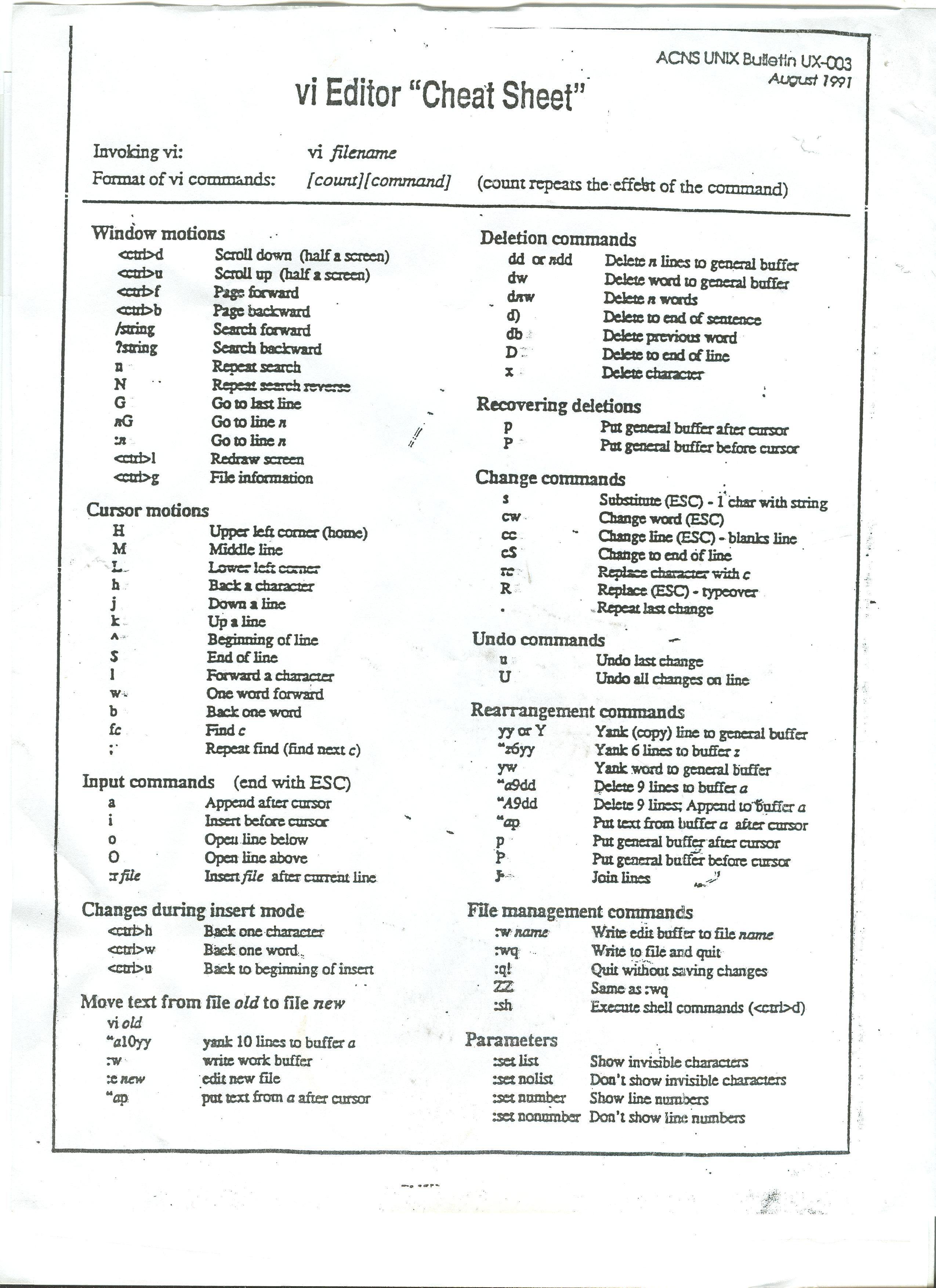 vim cheatsheet local vi cheatsheet vi notes Mastering the VI editor