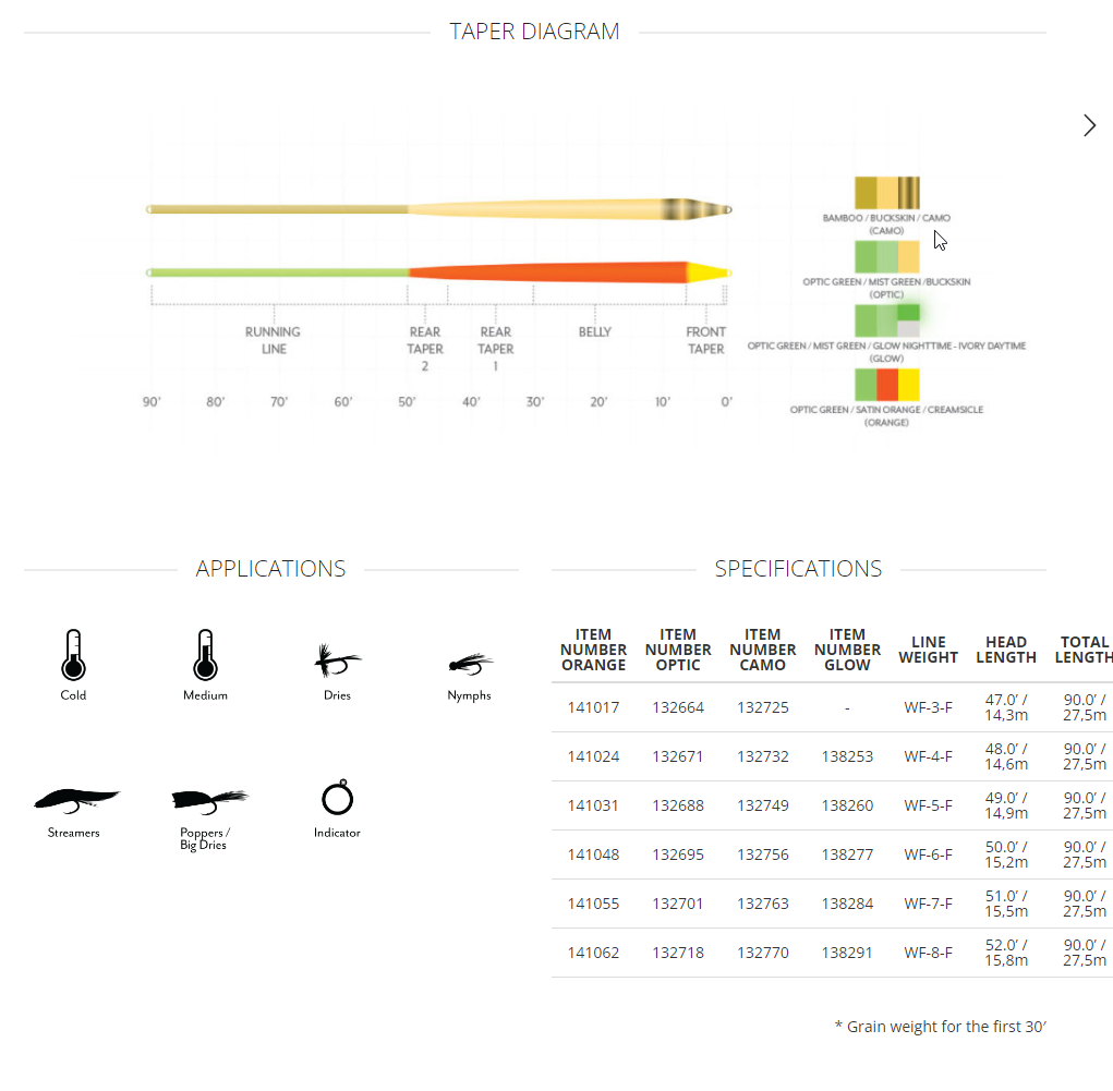 - 50-foot head that allows for long, accurate casts and exceptional mending on the water