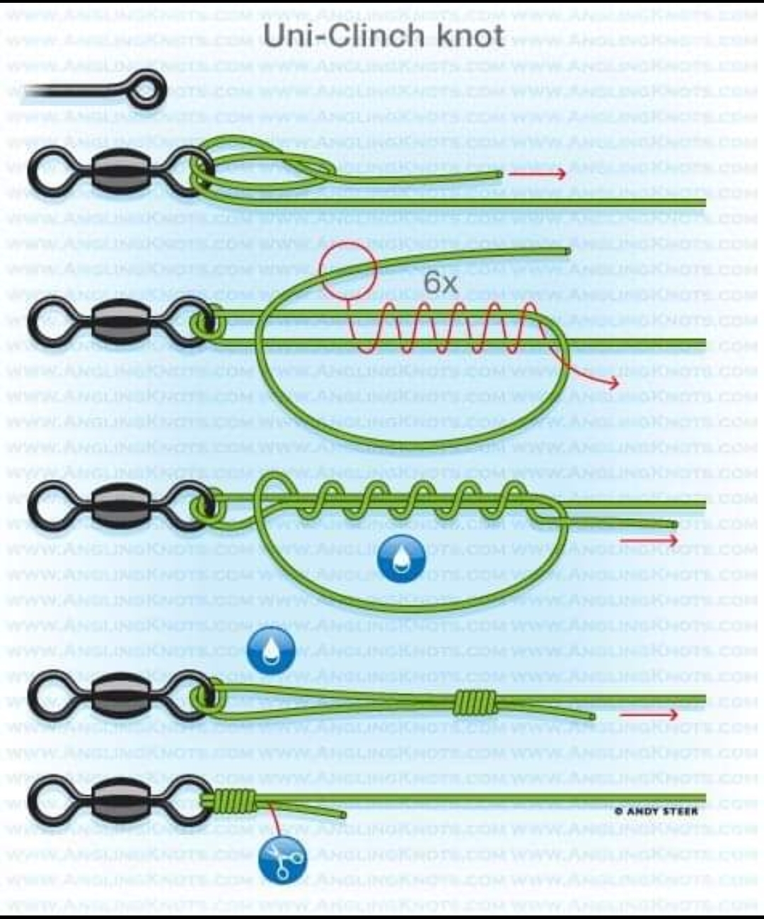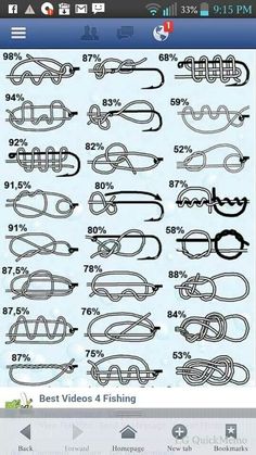 for bobber knot, clinch knot, double clinch, improved clinch, blood snell, grip knot, hook snell, improved surgeons, end loop knot (aka spider hitch), nail knot, rapala knot