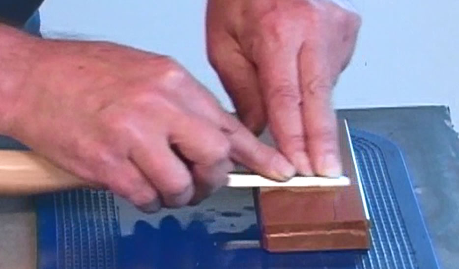 - 36:00 at the end of back flattening, take a fine slipstone at 45 degrees to the face and remove the extreme sharpness from handle end to 1/4" from tip (so it can still be used to clean into a corner) that can cut hand when parring